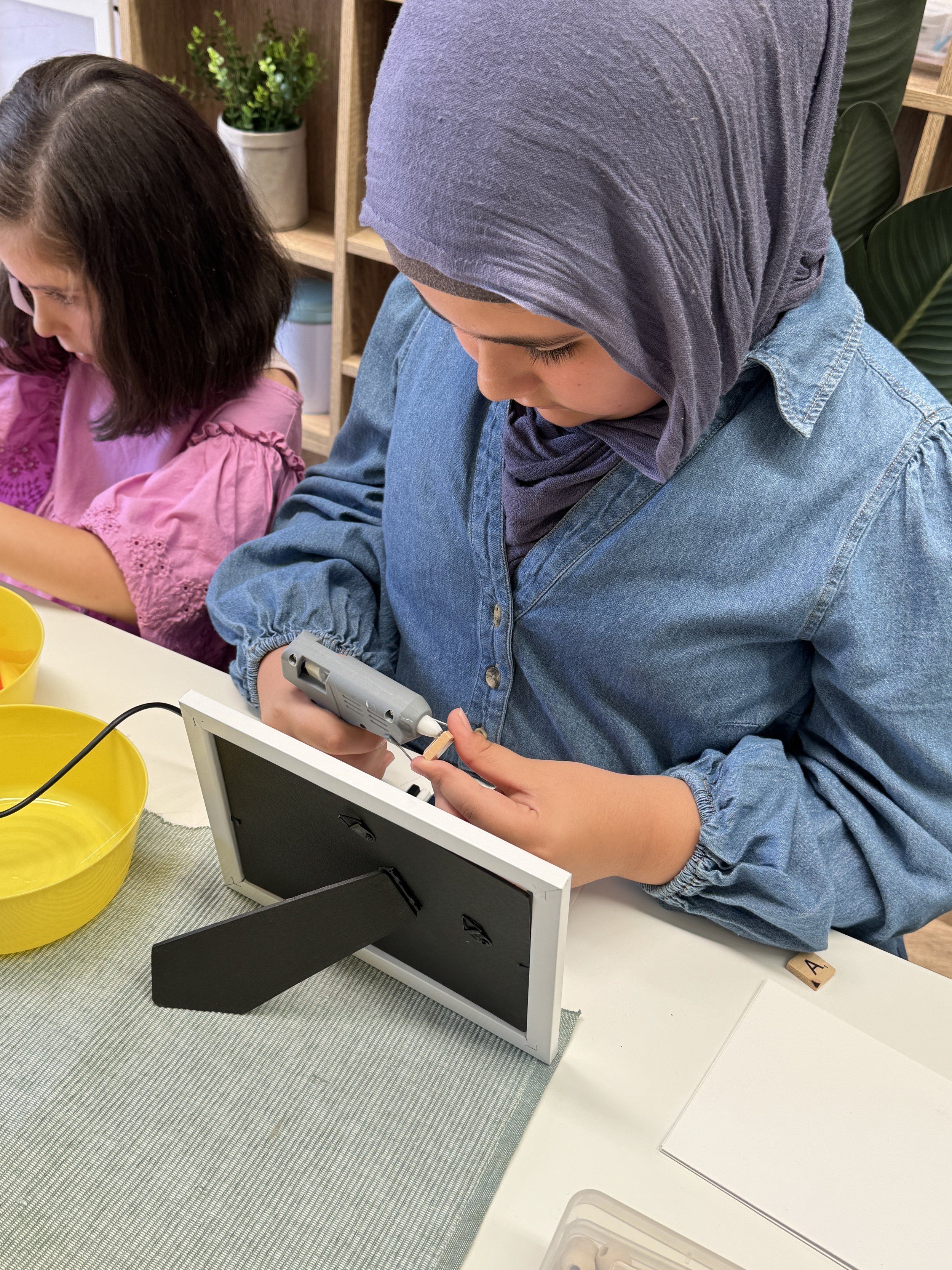 In this vibrant and creative session, children will design their own personalised name frame using mini coloured pencils and wooden letter tiles, carefully arranged within a frame. Each child will select and arrange their coloured pencils in a rainbow or custom palette, then place letter tiles to spell out their name. The finished product is a bold, cheerful keepsake that blends colour, pattern, and identity - perfect for displaying in a bedroom or study space.